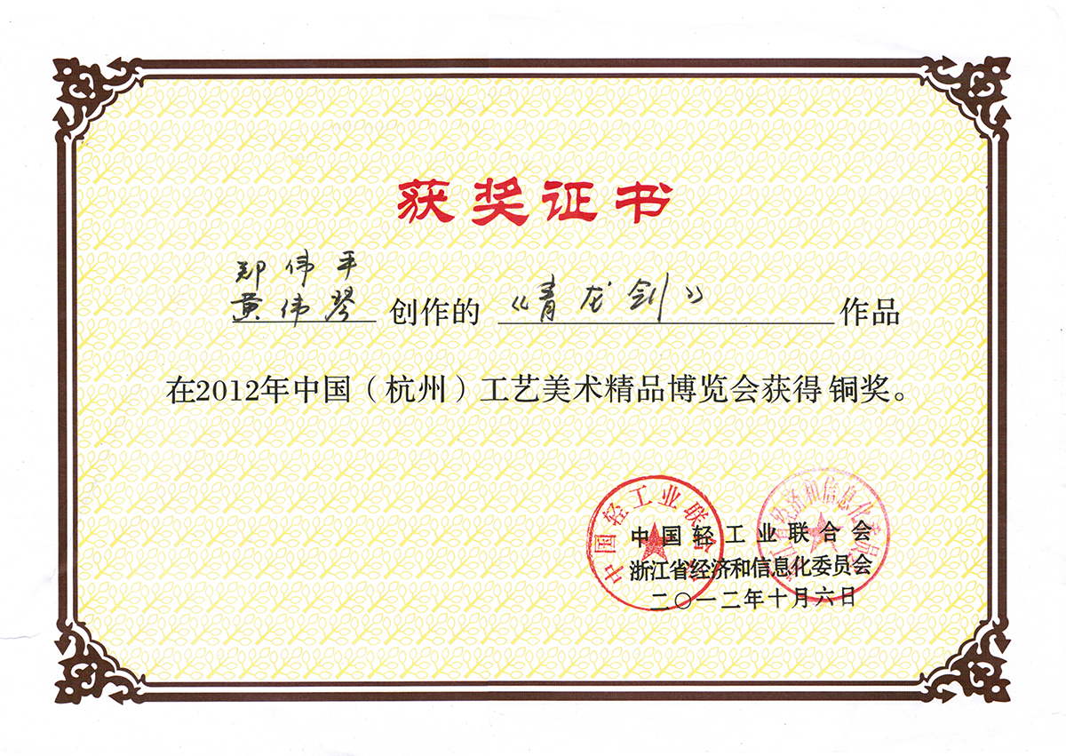 青龍劍獲獎(jiǎng)證書
