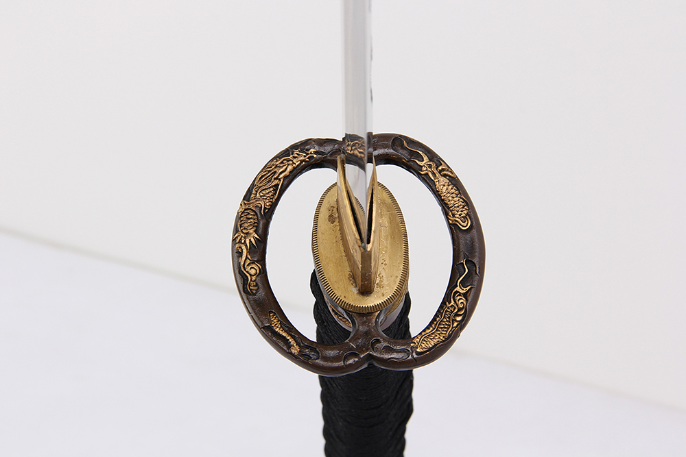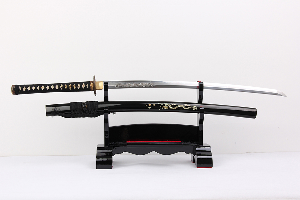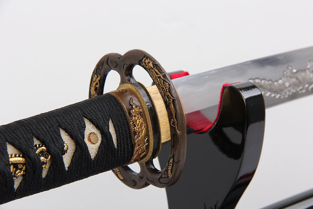 28寸高檔手工刀全長(zhǎng):104cm 刃長(zhǎng):68cm 柄長(zhǎng):28cm刃材:1095鋼燒刃無(wú)槽 刻梅花圖柄材:實(shí)木 繞好黑帶+真魚皮鞘材:實(shí)木 鑲嵌貝殼梅花圖、三個(gè)黑牛角,繞黑色真絲帶配件:銅;護(hù)盤流金銀包裝:梧桐木盒裝 帶大盒玉刀油銅錘 西班牙單層亮光刀架 黑色梅花真絲刀袋 黑說(shuō)明書