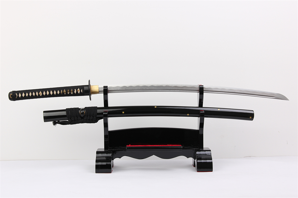 28寸手工刀全長(zhǎng):104cm 刃長(zhǎng):68cm 柄長(zhǎng):28cm刃材:百煉花紋鋼全槽有花口切線柄材:實(shí)木 繞黑色帶+真魚皮鞘材:實(shí)木黑亮光漆貼銅花 繞黑色真絲帶配件:銅包裝:紅龍布木盒裝外加雙瓦紙內(nèi)盒 帶黃龍布袋