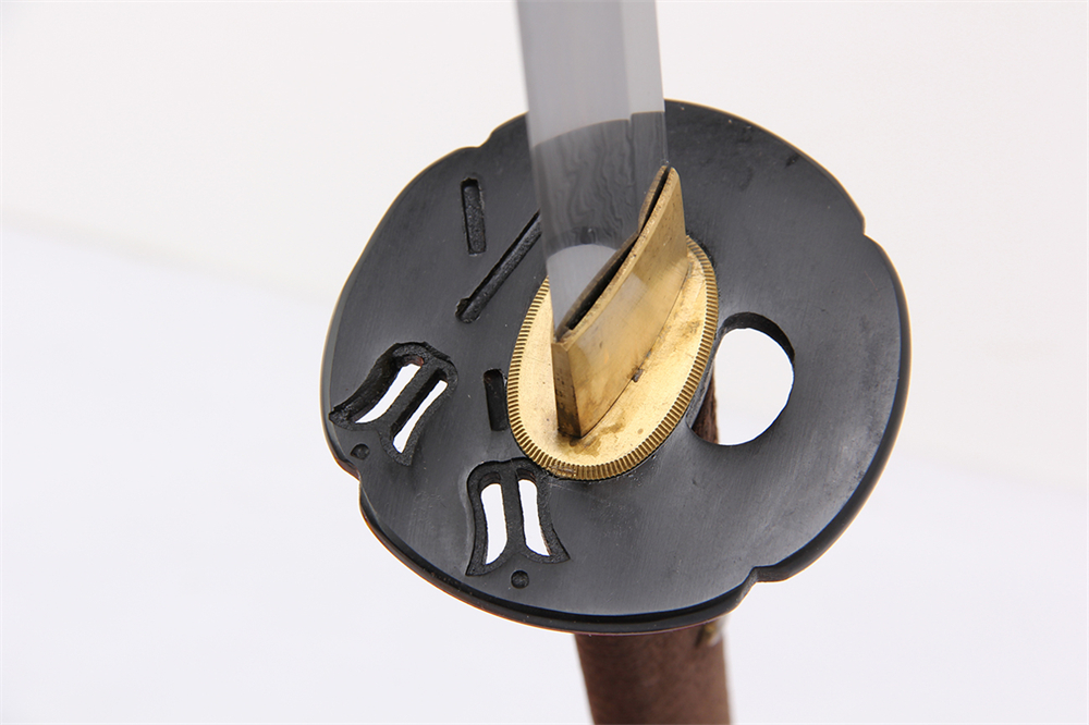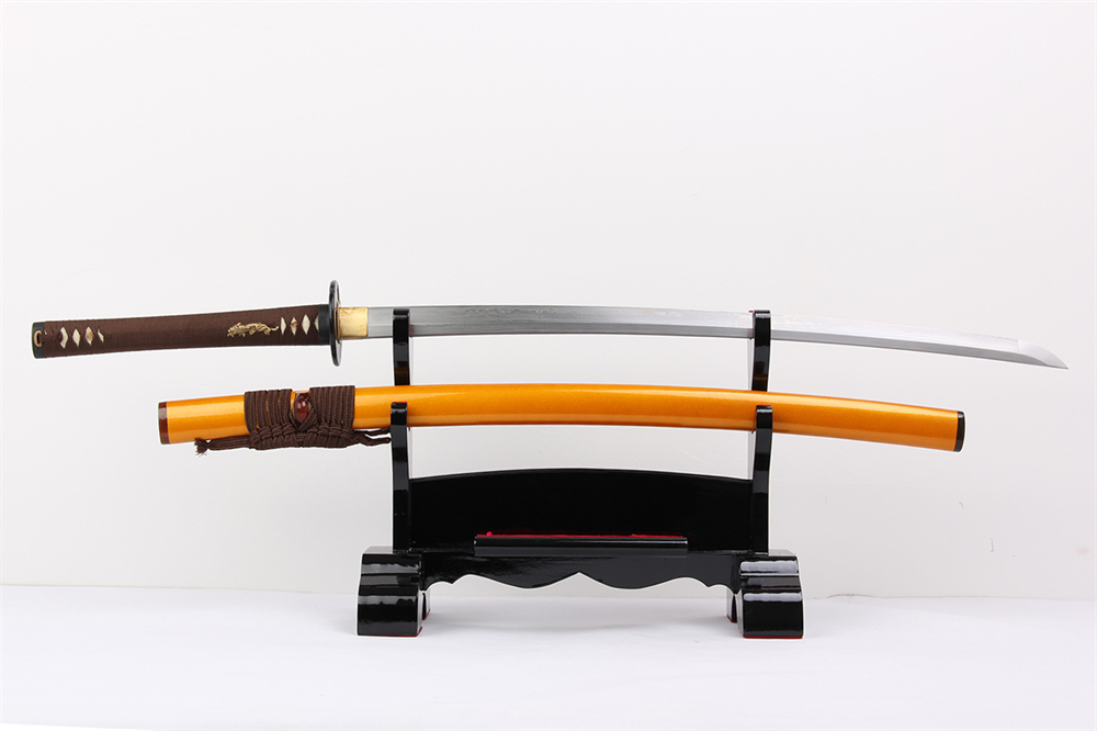 鞘材:實木閃光金黃漆三個黃牛角 繞棕色真絲帶