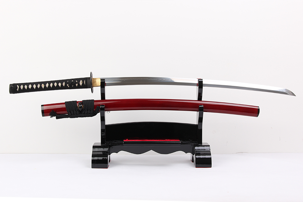 28寸高檔手工刀全長:104cm 刃長:68cm 柄長:28cm刃材:1095鋼燒刃無槽三色大頭柄材:實木 繞黑色帶+真魚皮鞘材:實木半透明酒紅漆三個黑牛角 繞黑色真絲帶配件:銅包裝:分體式梧桐木盒外加雙瓦紙盒裝 帶大盒玉刀油銅錘 紅色菊花真絲刀袋 西班牙式單層亮光刀架不印字貼紅布 黑說明書