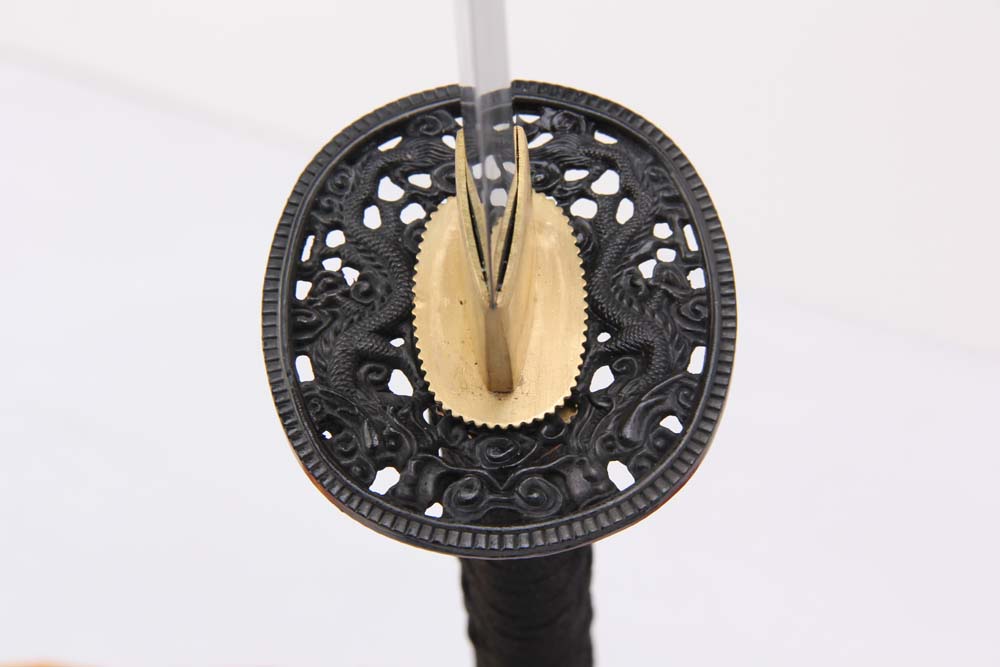 28寸手工刀全長(zhǎng):104cm 刃長(zhǎng):68cm 柄長(zhǎng):28cm刃材:花紋鋼普通燒刃全磨無(wú)槽有切線柄材:實(shí)木 繞黑色帶+真魚皮鞘材:實(shí)木黑亮光漆 繞黑色真絲帶配件:銅包裝:黑彩盒,帶黑布袋