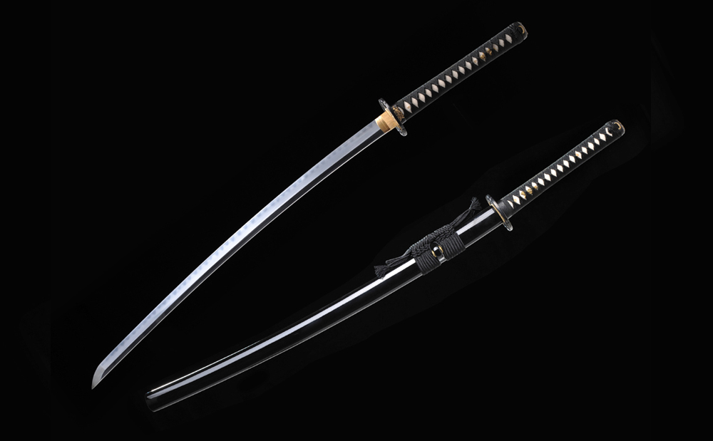 28寸高檔手工刀全長(zhǎng):104cm 刃長(zhǎng):68cm 柄長(zhǎng):28cm刃材:1095鋼燒刃無槽大頭有切線柄材:實(shí)木 繞黑色帶+真魚皮鞘材:實(shí)木黑亮光漆 繞黑色真絲帶配件:銅包裝:黑彩盒裝,真絲刀袋