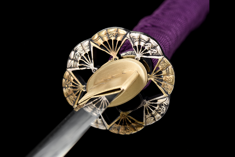 鞘材:實(shí)木黑底金加綠花亮光 繞紫色羊毛帶
