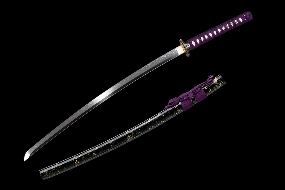 28寸手工刀全長(zhǎng):104cm 刃長(zhǎng):68cm 柄長(zhǎng):28cm刃材:1095鋼燒刃釘子紋無(wú)槽有切線柄材:實(shí)木 繞紫色帶+真魚皮鞘材:實(shí)木黑底金加綠花亮光 繞紫色羊毛帶配件:銅包裝:雙瓦紙盒配件:銅+鋅合金包裝:雙瓦紙盒