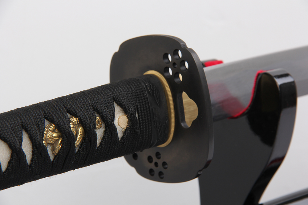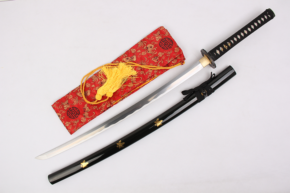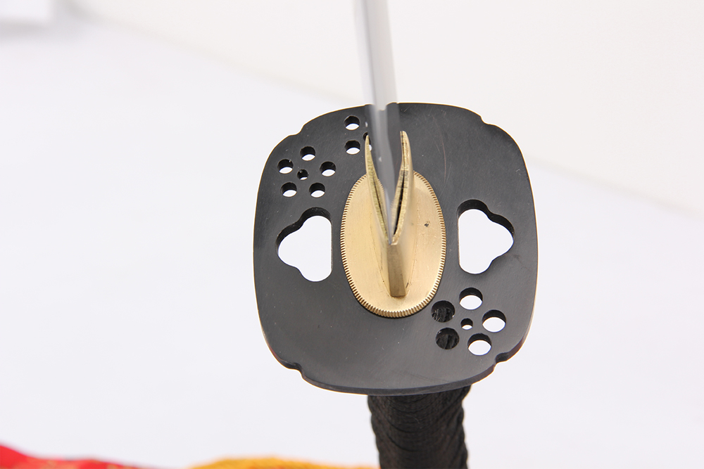 28寸手工刀全長(zhǎng):104cm 刃長(zhǎng):68cm 柄長(zhǎng):28cm刃材:百煉花紋鋼無(wú)槽有花口有切線(xiàn)柄材:實(shí)木 繞黑色帶+真魚(yú)皮鞘材:實(shí)木黑亮光貼花三個(gè)黑牛角 繞黑色帶配件:銅+鋅合金包裝:黑彩盒裝 帶黑色梅竹真絲刀袋