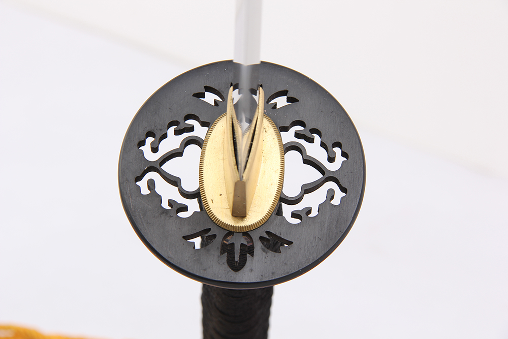 28寸手工刀全長:104cm 刃長:68cm 柄長:28cm刃材:百煉花紋鋼無槽有花口有切線柄材:實木 繞黑色帶+真魚皮鞘材:實木黑底白云殼 繞黑白真絲帶配件:銅+鋅合金包裝:黑彩盒 帶黑布袋