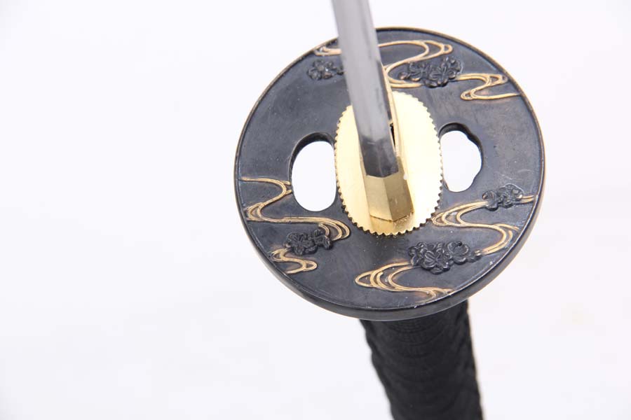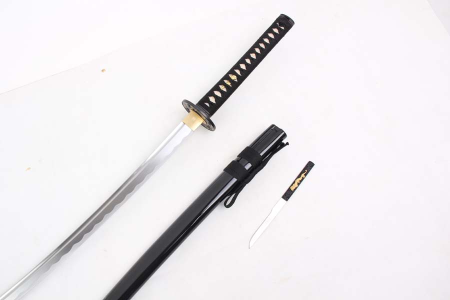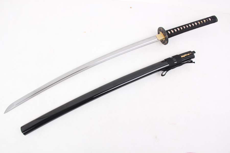 28寸手工刀全長:104cm 刃長:68cm 柄長:28cm刃材:1045鋼全槽有花口有切線 腹刀不銹鋼柄材:實木 繞黑色帶+真魚皮鞘材:實木黑亮光漆 繞黑色帶配件:銅+鋅合金包裝:黑彩盒 帶黑布袋