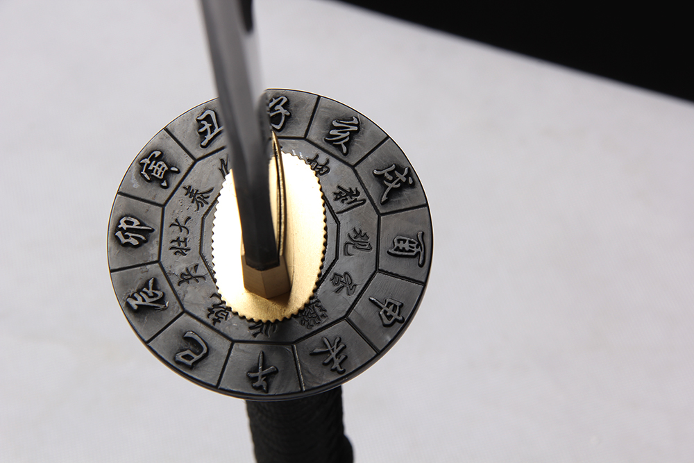 28寸手工刀全長:104cm 刃長:68cm 柄長:28cm刃材:1045鋼無槽有花口有切線 柄材:實木 繞黑色帶+仿魚皮鞘材:實木黑亮光印生肖 繞黑色帶配件:鋅合金包裝:雙瓦紙盒 帶黑布袋