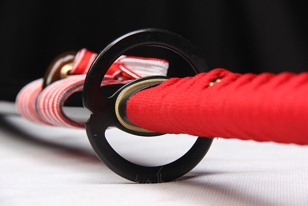 鞘材:實(shí)木黑亮光三個(gè)黃牛角 繞紅白雙色帶