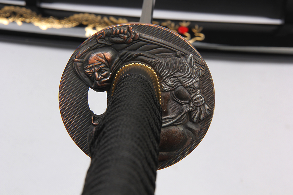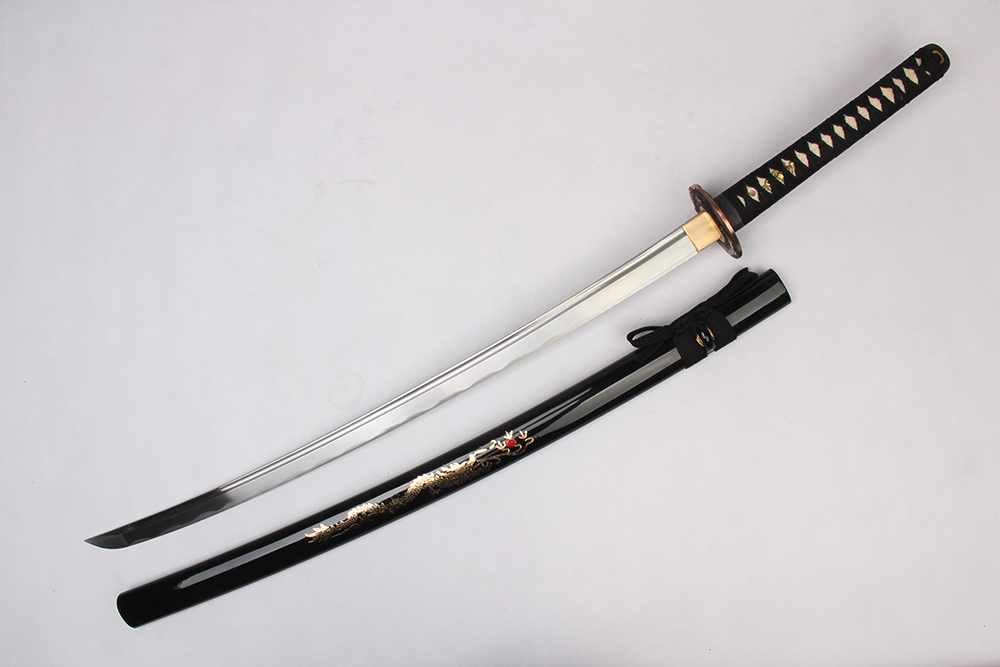 鞘材:實木黑亮光激光刻小金龍上金粉 繞黑色帶