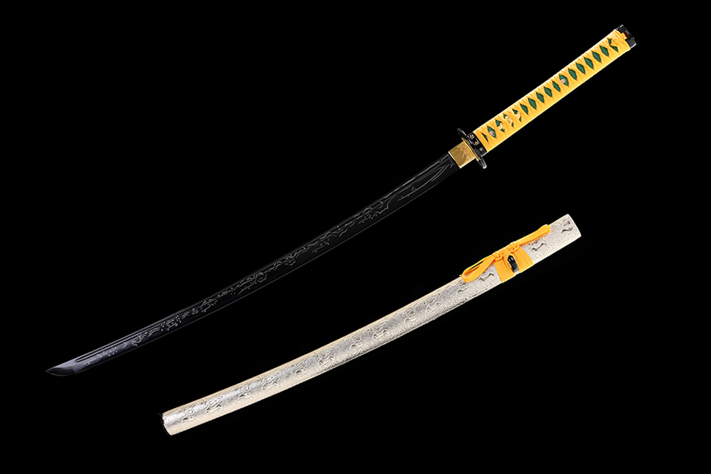 鞘材:實(shí)木包仿金色蟒蛇 繞桔黃帶