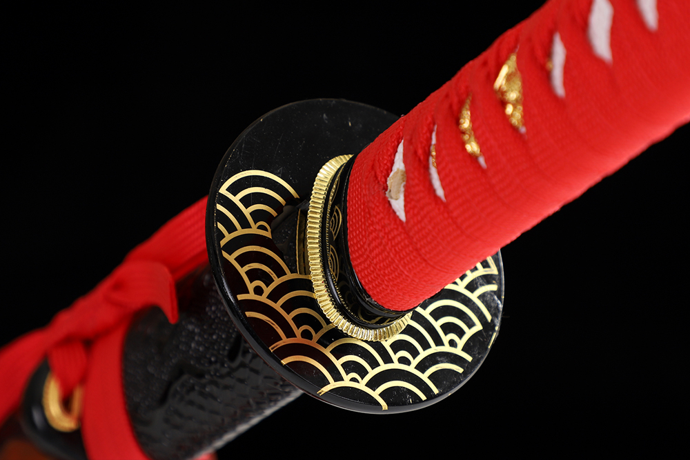28寸手工刀全長(zhǎng):104cm 刃長(zhǎng):68cm 柄長(zhǎng):28cm刃材:1045鋼發(fā)黑全槽有切線有花口 激光刻赤竹柄材:實(shí)木 繞大紅帶+仿魚皮鞘材:實(shí)木包仿黑色蟒蛇 繞大紅帶配件:鋅合金包裝:雙瓦紙盒 帶黑布袋