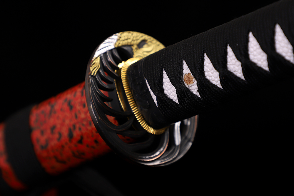 鞘材:實(shí)木黑亮光加紅黑金三色斜口兩圈黑 繞黑色帶