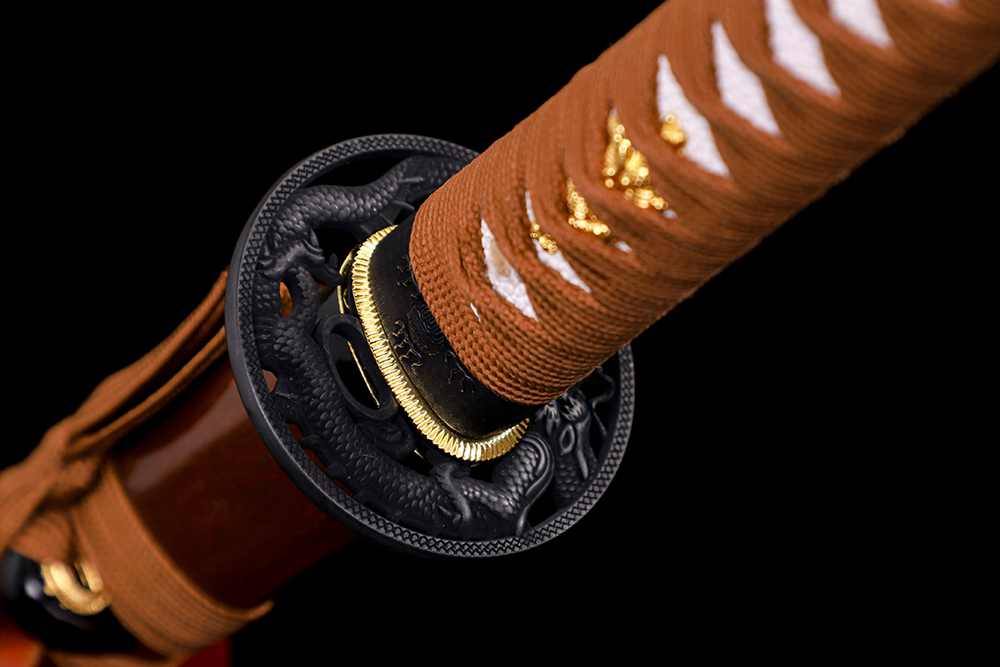 鞘材:實木黑亮光貼龍加半截咖啡色 繞棕色帶