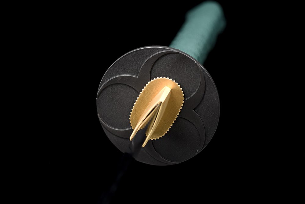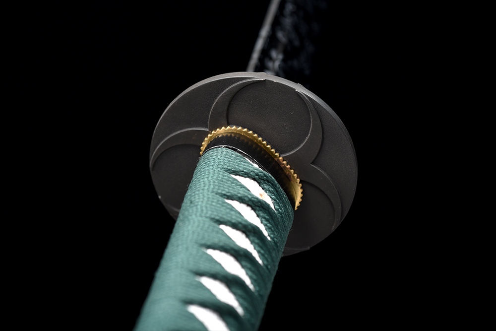 鞘材:實木黑色拉銀絲水晶鼻 繞綠色帶